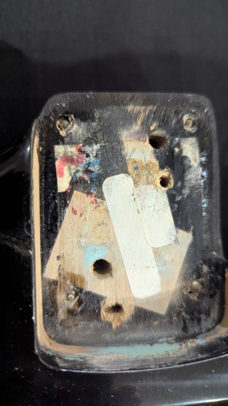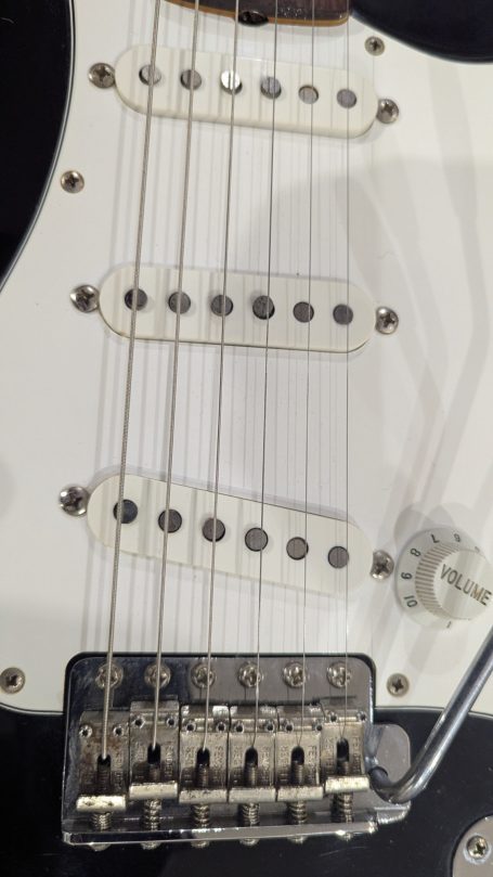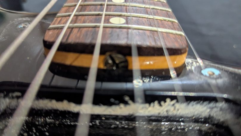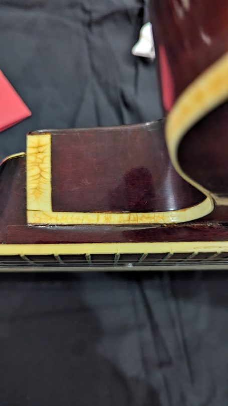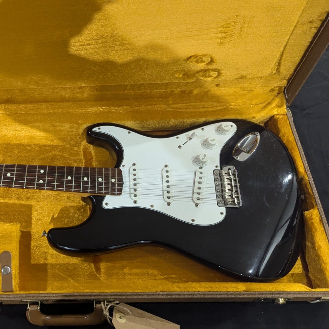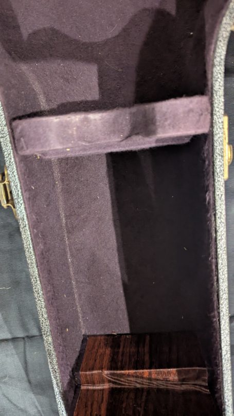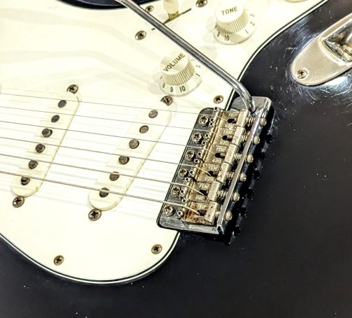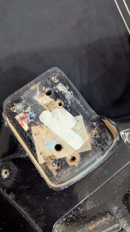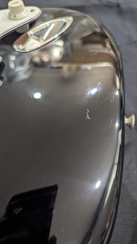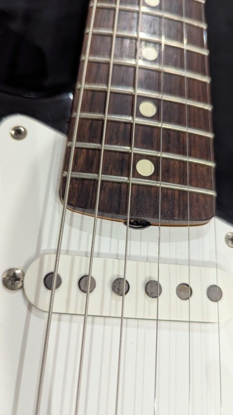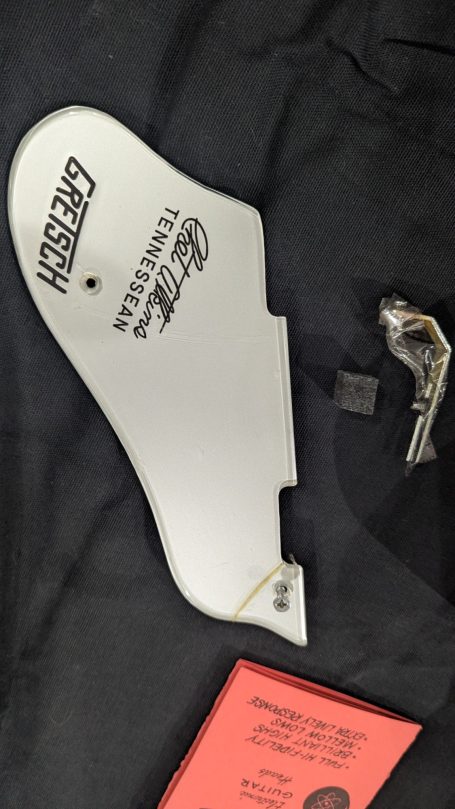 _Le pickguar d'origine, son equerre et sa visserie sont bien présents. Le pickguard s'est légérement fissuré lors du stockage. Il est donc maintenant systématiquement retiré lorsqu'il est placé dans son hard case.