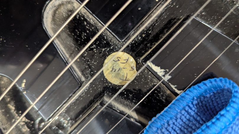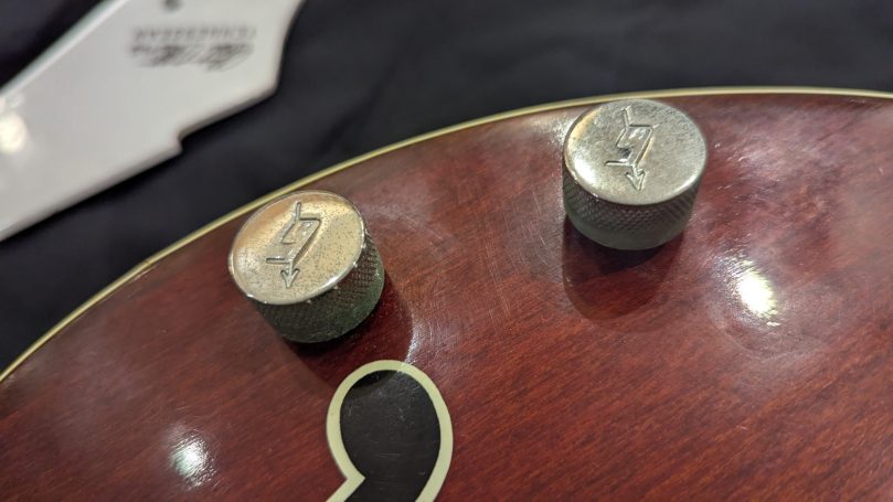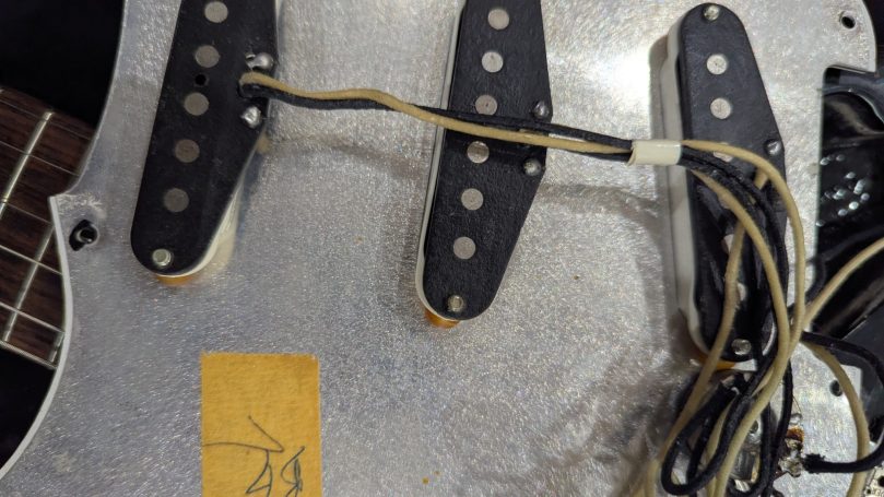_Tampons sous le pickguard, au talon du manche, sur le corps, numéros de série des potentiomètres CTS indiquent que tout est d'origine.