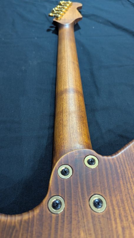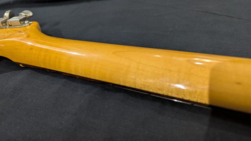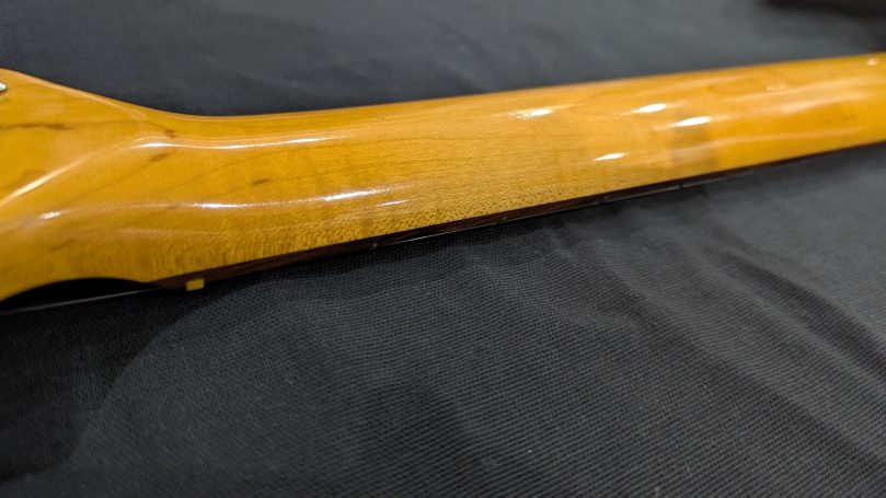 - Finition huilée dos et manche / table peinture nitro non vernie (pour se reliquer plus vite)